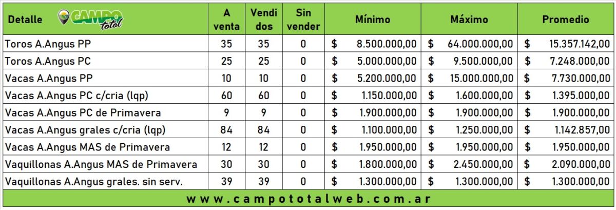 El arranque fue a toda orquesta, con manos y pujas muy fuertes para quedarse con el “elegido” por varios. Es que el RP1461 (Virrey por Bandido por Brutal) llegó a 64 millones de pesos para arrancar un cerrado aplauso. Así fue pasando una tremenda torada con gran parte del ofrecimiento del “núcleo” genético de Santa Rosa. No extrañó que el promedio de más de 15 millones de pesos quede como el mejor hasta el momento para una cabaña con la venta de más de 20 piezas de la categoría.