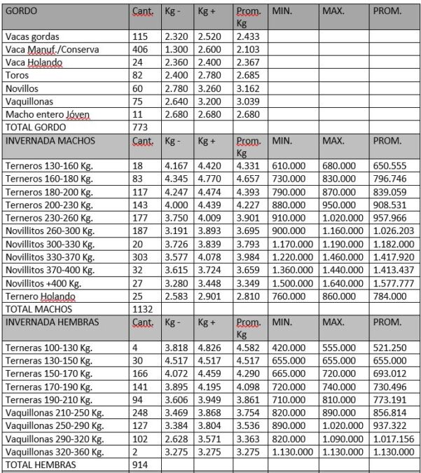 La hembra ahora si buscada por todos los que se quedaron afuera no quedó atrás: 3900-4000$ y por encima, toda la hembra para invernar o criar, todo se pujó y nada frenó el ritmo, de haciendas que era difícil destacar de a un corral, cuando prácticamente todo, estaba en un estado muy pocas veces visto para esta época.