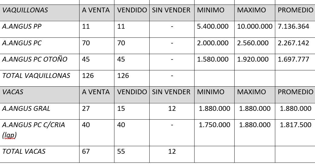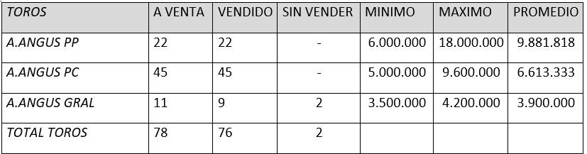 (*) Los toros generales corresponden a la cabaña El Amanecer
