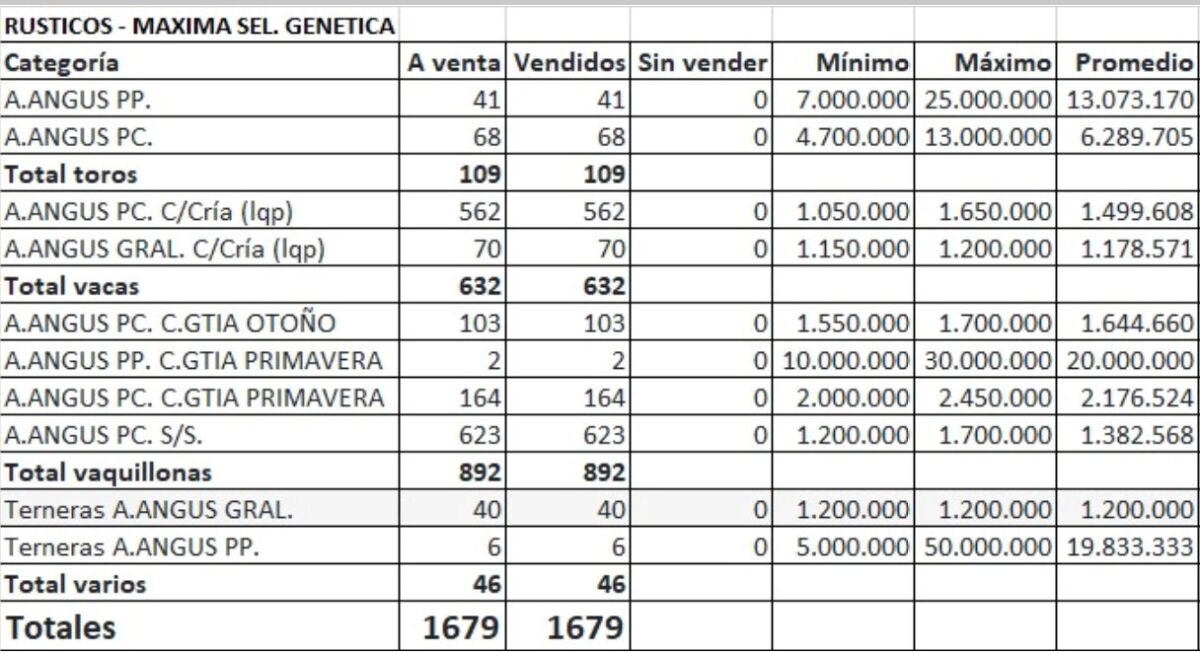 Primero fueron las con cría, vaquillonas y vacas, con valores interesantes, mientras que las preñadas, marcaron fuertemente la brecha de primavera y otoño, estas últimas tal vez sin la vehemencia de las otras, o si se comparan con las sin servicio, un mercado que a veces prefiere su propia preñez a esperar una parición de una vaquillona no conocida, terminando con terneras Angus certificadas y la sensación que las 5 horas de remate, se fueron volando.