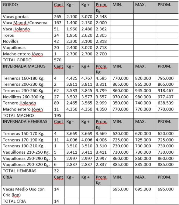 Se realizó el remate de la firma Gregorio Aberasturi en Carhue, estos fueron los valores: