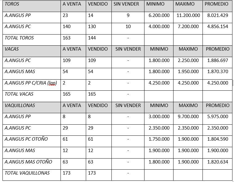 La jornada de sol y algo ventosa sirvió para que en horas del mediodía comenzara la venta por pantalla de las hembras PC y MAS de la cabaña. Allí siempre con interés se fueron colocando cada uno de los lotes, algunos ya pre ofertados, con muchas manos a valores de mercado pero mostrando un muy buen estado tanto de las vaquillonas como de las siempre buscadas vacas de la cabaña.
