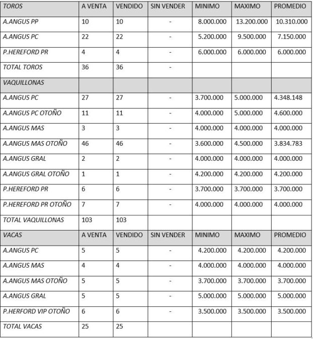 Por eso, más allá de la buena gente, el trabajo, la responsabilidad, el compromiso y el sacrificio, siempre dan sus frutos, este seguramente será el sentimiento de los principales artífices de las cabañas Don Juan, El Tigre y la consignataria Iparraguirre-Susso.
