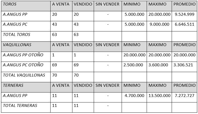 No es una zona fácil, y las lluvias siempre desnudas dos extremos: la sequía apatía, desanimo y preocupación. El agua, muestra entusiasmo y esperanza, es lo que se vio en las manos, la agilidad, las pujas, en las haciendas presentadas por Luciano Correndo y Julián Lavayén, sabedores ambos que la “vara” cada año se eleva, ya son 9 los que presenta esta venta, que además sumó colaboradores y eso también, trajo más manos a un remate que ya venía consolidado.