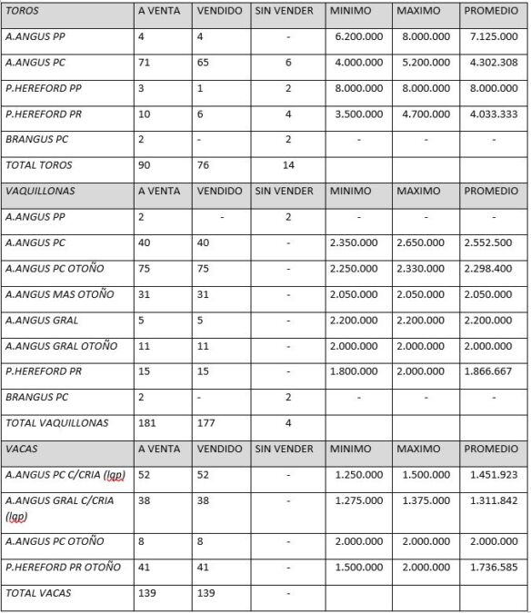 Las de “los Keller” no se quedaron atrás y vacas incluso Cut, se fueron a muy buenos valores, cerrando así una tarde donde hubo de todo, teléfonos, representantes y cuanto repertorio permitiera contener el importante volumen a venta.