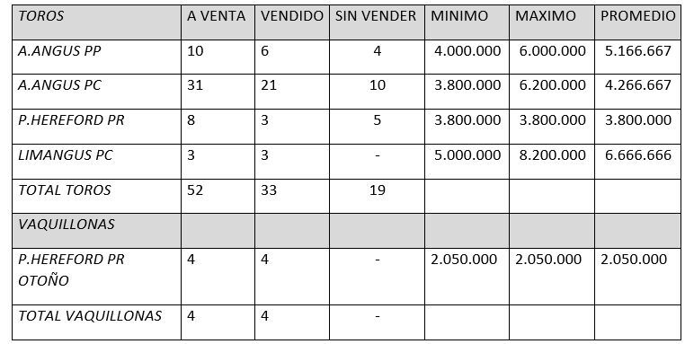 Lo destacado de la jornada fueron los Limangus de Santa Caclara de Fernandez que lograron el mayor valor de la jornada alcanzando los 8,2 millones en muy buena puja e interés.