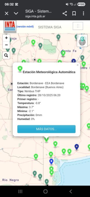 Desde el Inta Bordenave, marcaron que los satelites detectaron las más bajas temperaturas entre las 5 y las 6 de la mañana indicaba el Ing Federico Moreyra desde la propia estación, marcando además que la temperatura subió rápidamente a partir de esa hora, unos tres grados.