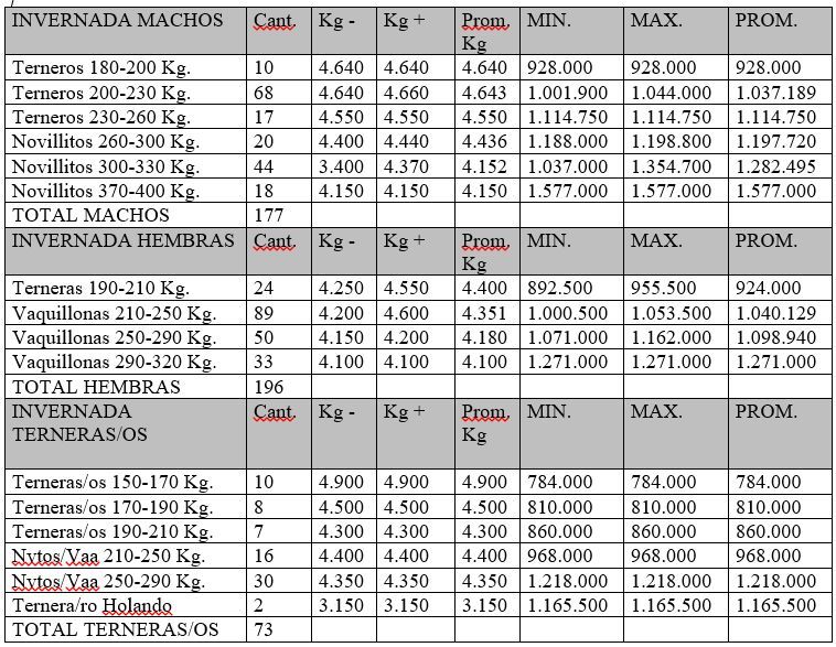 Total Invernada: 446