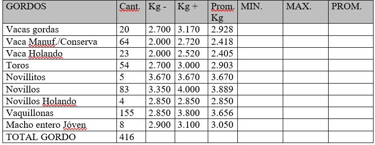 Una vez más la firma Martin y Alonso mostró destacados valores a la balanza, con un conjunto de gordos que desnuda el estado de la región.
