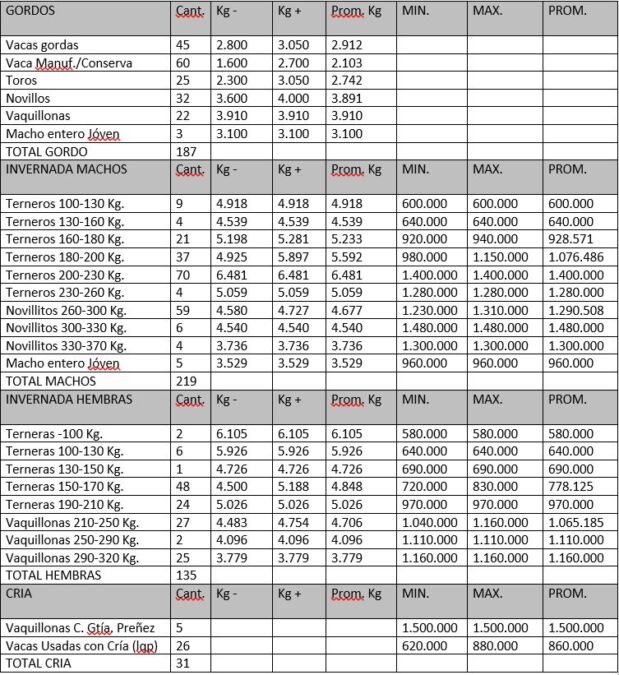 Lo cierto es que hubo ventas, hubo mercado y el lote de apertura de unas vaquillnas feedloteadas, se pusieron arriba en los 3910$, con un lote de consumo liviano de novillos en los 4000$. La vaca gorda estuvo presente y se metió con 3050$ en un remate que tuvo poco gordo, ya que las lluvias del día martes, impideron alguna carga.