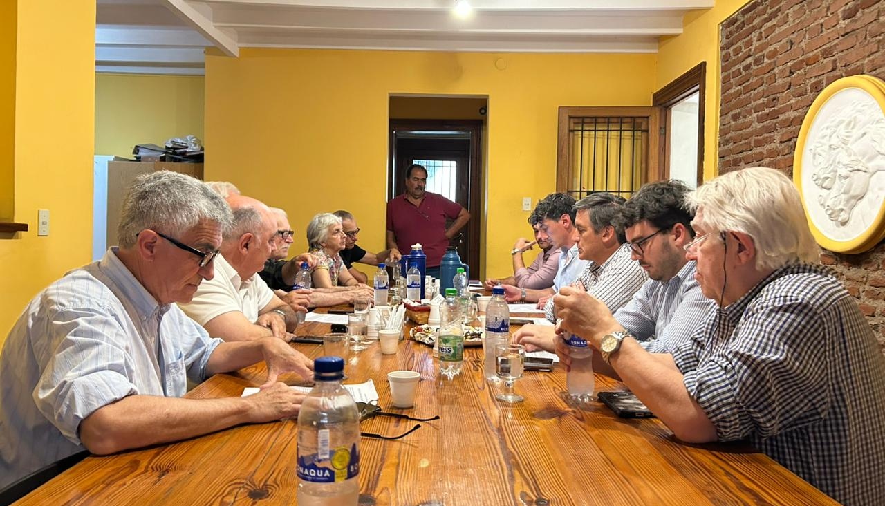 Presentes en la asamblea: Lucas Mazzuchelli (izq.), Luis Alvarez, Pedro Forgue, Luis Eizaguirre, Juan Abraham, Raquel Achinelly, Braian Robert, Juliana Garay, Guillermo Zuntini, Mariano D’Amore, Juan Carlos Emilio Fuente, Adrián Achinelly, Alejandro Castro y Pedro Larraburu.
