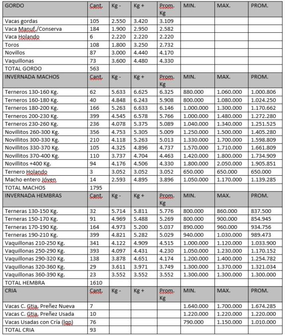 Total Gordo, Invernada y Cria: 4061