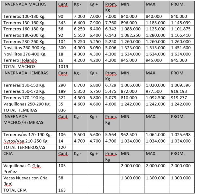 Con un buen encierre y sus ventas por pantalla, la firma Brandemann mostró buenos valores para toda la invernada. Con 2128 vacunos y ventas...