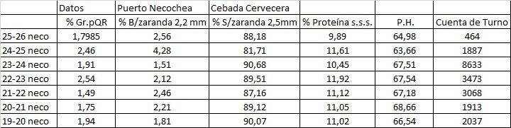 En la delegación Necochea, donde la Cámara analiza principalmente cebada cervecera, la cosecha avanza más lentamente. Los primeros resultados muestran: