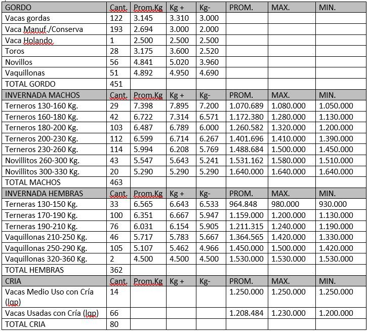 (*) Se colocaron las vacas preñadas a 1.5 millones de pesos a 60 días directo.