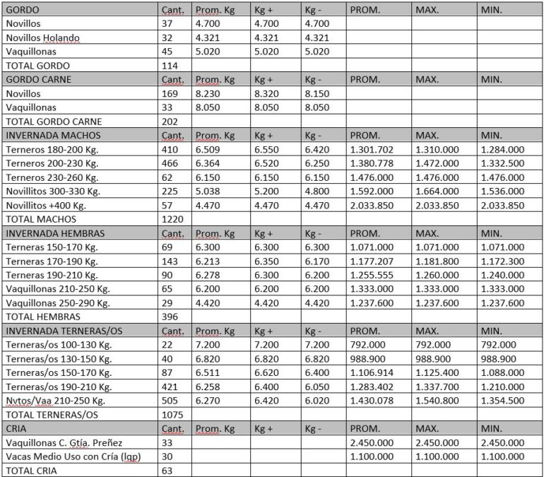 Estos números reflejan no solo el interés de la demanda, sino también la calidad de la hacienda ofrecida, que permitió sostener valores competitivos en todas las categorías principales.