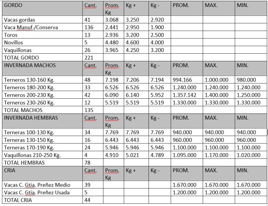 A pesar de varios lotes caídos por las lluvias, el remate de Ansaldo y Cia, mostró ventas de mercado, con una invernada que acompaño y lotes de gordos que alcanzaron los 4800$.