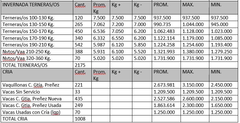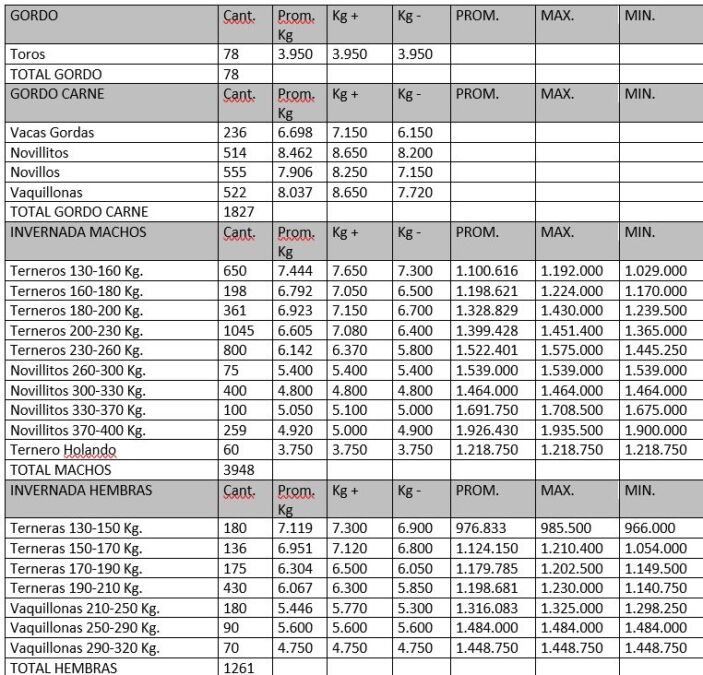 Al momento de la venta, con Roberto en el martillo, arrancaron fuerte los machos alcanzando los 7.650 pesos para los mas livianos, mercadería que no abunda y que sin dudas tiene manos siempre dispuestas a pujar. Sin dudas hubo categorías muy destacadas con algunos «picos» altos para aquellos lotes definidos y que llegaban a los 90 días de plazo.