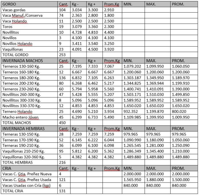 Para el final, un lote de vaca nueva, preñada, con varios lotes de CUT (lo único con 90 días), fueron encontrando las manos con más trabajo pero con obligaciones que generaron interes y colocándose a bueno valores, incluso por encima de lo esperado por los remitentes.