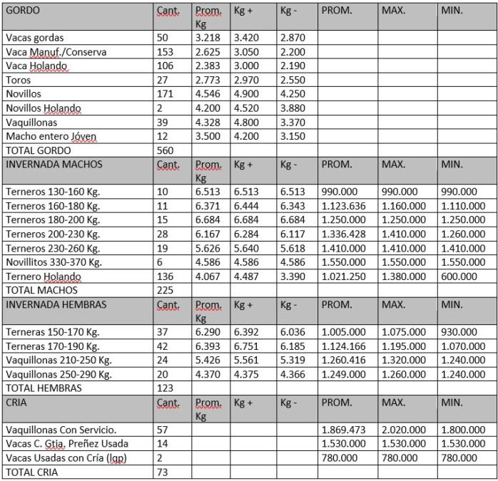 El cierre fue para vaquillonas con servicio -sin garantía de preñez-, pero el mismo se dio durante 4 meses, con vaquillonas bien adelantadas, de hecho las más livianas, estaban en 310 kg, para que el grueso de ellas, superara los 350 kg. Los valores? Hasta superar los 2 millones de pesos.