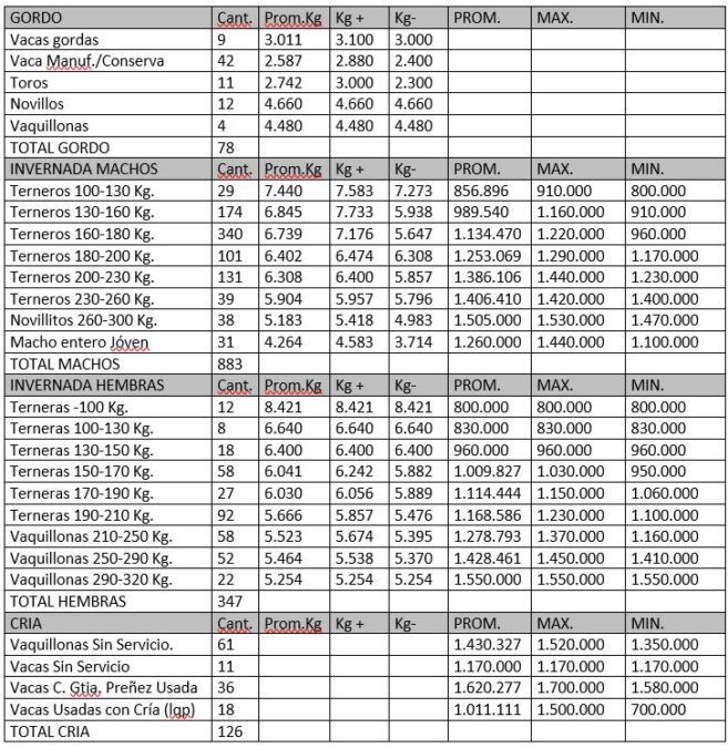 El comienzo de las ventas fue con poco menos de 80 gordos, con algún buen consumo en los 4660$, la vaca llegando a los 3200$ y el toro en 3120$, parte de las haciendas a la balanza vendidas en los corrales.