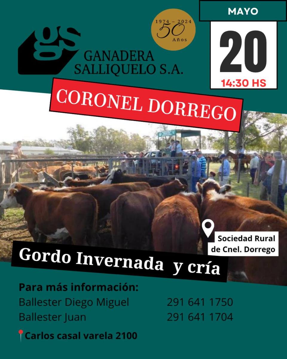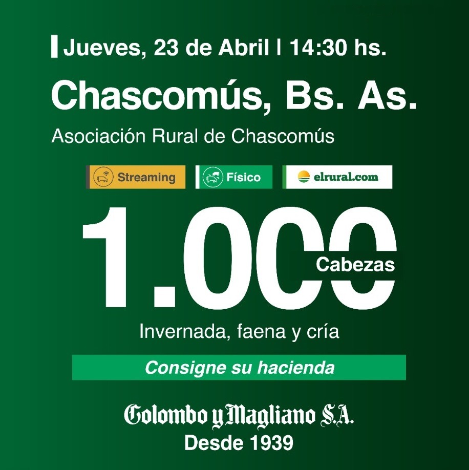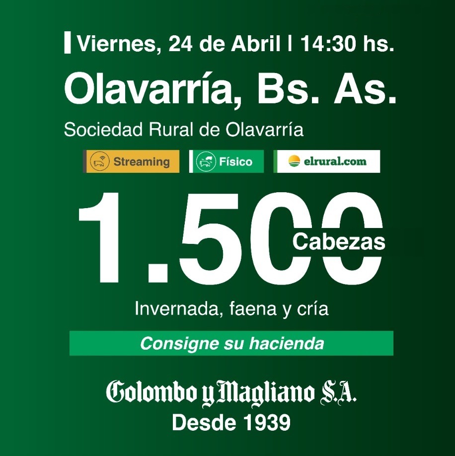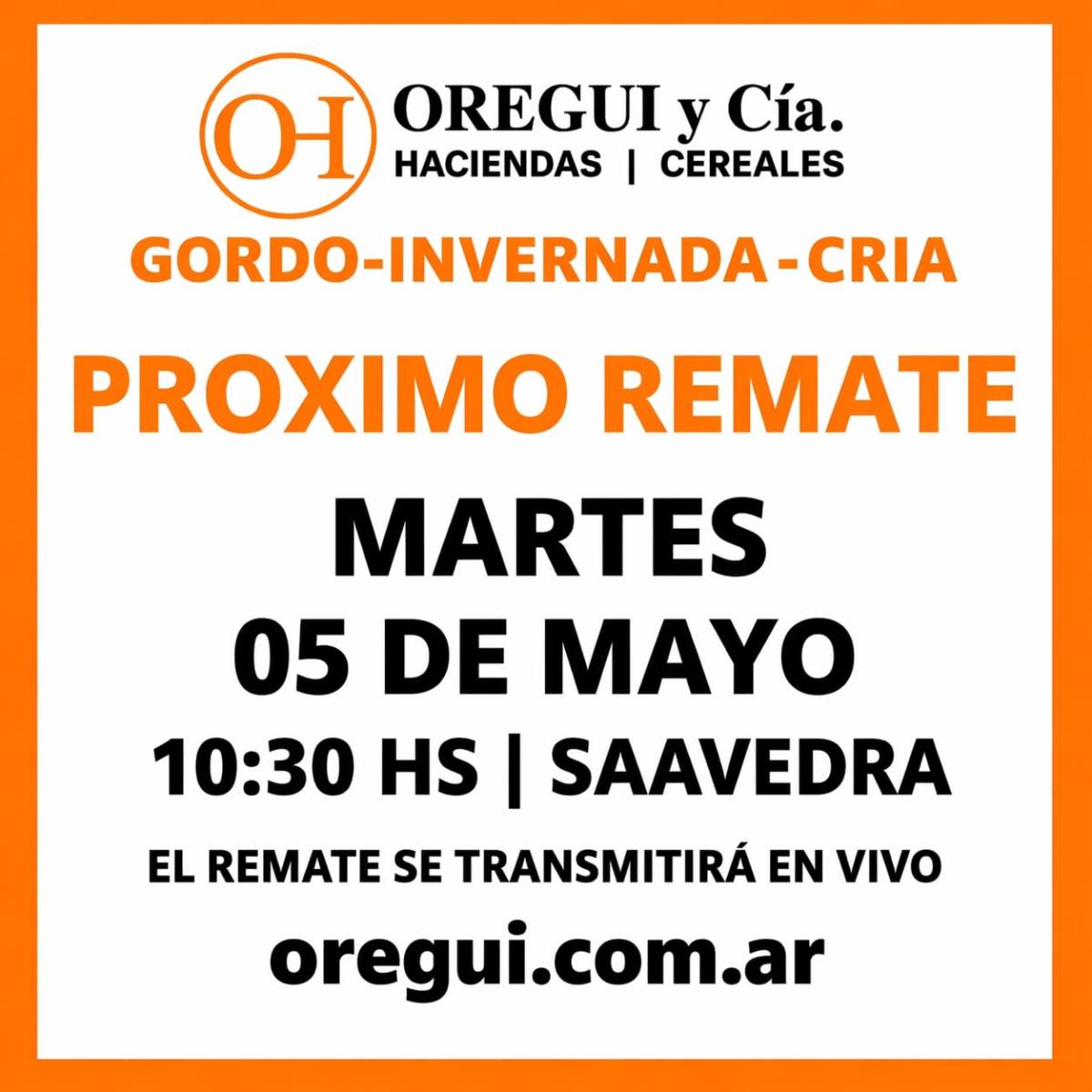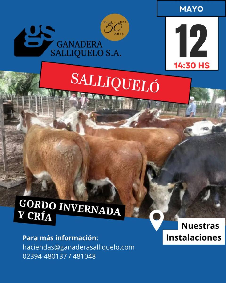 Agenda de Remates LANUSSE SANTILLAN EN TORNQUIST GORDO, INVERNADA Y CRIA 18 de abril de 2026 12:00 hs. ASOCIACIÓN RURAL DE TORNQUIST 11 6973-7363 Enviar E-Mail Sitio Web MADELAN ESPECIAL DE ZAFRA - LOS QUIRQUINCHOS GORDO, INVERNADA Y CRIA 21 de abril de 2026 09:30 hs. LOS QUIRQUINCHOS - WEB MADELAN 2983 40-7854 N/D Sitio Web COLOMBO Y MAGLIANO EN RAUCH GORDO, INVERNADA Y CRIA 21 de abril de 2026 14:00 hs. SOCIEDAD RURAL DE RAUCH 2914 04-2440 N/D Sitio Web MARTIN Y ALONSO EN GUAMINI GORDO, INVERNADA Y CRIA DIFERIDO POR LLUVIAS 21 de abril de 2026 10:30 hs. UNION DE GANADEROS 2923 64-1340 Enviar E-Mail Sitio Web GREGORIO ABERASTURI EN CARHUE GORDO, INVERNADA Y CRIA 22 de abril de 2026 15:00 hs. SOCIEDAD RURAL DE ADOLFO ALSINA CARHUE Enviar E-Mail Sitio Web MARTIN Y ALONSO EN HUANGUELEN ESPECIAL DE GORDO 22 de abril de 2026 10:30 hs. HUANGUELEN 2923 64-1340 Enviar E-Mail Sitio Web COLOMBO Y MAGLIANO EN CHASCOMUS GORDO, INVERNADA Y CRIA 23 de abril de 2026 14:30 hs. SOCIEDAD RURAL DE CHASCOMUS 2914042440 N/D Sitio Web LANUSSE SANTILLAN EN PEHUAJO GORDO, INVERNADA Y CRIA 23 de abril de 2026 11:00 hs. SOCIEDAD RURAL DE PEHUAJO 11 6973-7363 Enviar E-Mail Sitio Web VITTORI ERCAZTI EN LA WEB INVERNADA Y CRIA 23 de abril de 2026 09:30 hs. SOCIEDAD RURAL DE BAHÍA BLANCA 2916 42-0950 Enviar E-Mail Sitio Web CAMPOS Y GANADOS DESDE CLARAZ GORDO, INVERNADA Y CRIA DIFERIDO AL 23/04 23 de abril de 2026 14:00 hs. FERIA CLARAZ 11 2774-7441 N/D Sitio Web ALFREDO S MONDINO - OLAVARRIA GORDO, INVERNADA Y CRIA 23 de abril de 2026 11:00 hs. SOCIEDAD RURAL DE OLAVARRIA 2923578916 N/D Sitio Web GANANOR PUJOL - 3° REMATE DEL SUDOESTE BONAERENSE INVERNADA Y CRIA 23 de abril de 2026 17:00 hs. CORONEL SURAREZ POLO CLUB - STREAMING 11 6655-0551 N/D Sitio Web NESTOR HUGO FUENTES EN REALICO GORDO, INVERNADA Y CRIA DIFERIDO POR LLUVIAS AL VIERNES 24 24 de abril de 2026 10:00 hs. REALICO- PREDIO NHF 2954 47-8046 Enviar E-Mail Sitio Web BRANDEMANN EN LA WEB INVERNADA Y CRIA ATENCIÓN: HOTEL CRISTAL 24 de abril de 2026 11:00 hs. CASTEX - POR PANTALLA- HOTEL CRISTAL 2916 42-2918 N/D Sitio Web COLOMBO Y MAGLIANO EN OLAVARRIA GORDO, INVERNADA Y CRIA ATENCIÓN: REPROGRAMADO POR LLUVIAS 24/04 24 de abril de 2026 14:00 hs. SOCIEDAD RURAL DE OLAVARRIA +54 9 2914 04-2440 N/D Sitio Web PRODUCTORES RURALES DEL SUD EN BAHIA BLANCA GORDO, INVERNADA Y CRIA REMATE 13° ESPECIAL DE ANGUS 29 de abril de 2026 14:30 hs. ASOCIACIÓN DE GANADEROS Y AGRICULTORES- CANAL RURAL 2914 13-3125 Enviar E-Mail Sitio Web COLOMBO Y MAGLIANO EN SANTA ROSA GORDO, INVERNADA Y CRIA 29 de abril de 2026 10:00 hs. SANTA ROSA - SOCIEDAD RURAL DE SANTA ROSA- CANAL RURAL 2914 04-2440 N/D Sitio Web ANSALDO Y CIA - EN CORONEL SUAREZ GORDO, INVERNADA Y CRIA 29 de abril de 2026 14:30 hs. SOCIEDAD RURAL DE CORONEL SUAREZ 2923 64-4817 N/D Sitio Web ALFREDO S MONDINO - ESPECIAL DESTETE RAUCH FAENAR, INVERNADA Y CRIA 30 de abril de 2026 11:00 hs. SOCIEDAD RURAL DE RAUCH 2923 57-8916 N/D Sitio Web 50° EXPOSICIÓN RURAL DE TORNQUIST 2° CONCURSO Y VENTA DE TERNEROS DEL SO 01 de mayo de 2026 10:00 hs. ASOCIACIÓN RURAL DE TORNQUIST 2916 43-3130 Enviar E-Mail Sitio Web ECHEGUIA HERMANOS EN TORNQUIST EN EL MARCO DEL 2° CONCURSO DEL TERNERO DEL SO 04 de mayo de 2026 11:00 hs. ASOCIACIÓN RURAL DE TORNQUIST 2916 43-3130 N/D Sitio Web OREGUI EN SAAVEDRA GORDO, INVERNADA Y CRIA ATENCIÓN POSTERGADO POR LLUVIAS. 05 de mayo de 2026 10:30 hs. ASOCIACION RURAL DE SAAVEDRA 2923 64-1494 Enviar E-Mail Sitio Web ALFREDO S MONDINO - ESPECIAL DE VACAS TELEVISADO PAMPA HUMEDA 05 de mayo de 2026 11:00 hs. CANAL RURAL 2923 57-8916 N/D Sitio Web 1° REMATE ESPECIAL DE OTOÑO - ANGUS DEL SUR DON FIOTO - STROEDER 06 de mayo de 2026 14:00 hs. STROEDER - INSTALACIONES DE LA COOPERATIVA 2920 32-7445 Enviar E-Mail N/D GREGORIO ABERASTURI EN LA WEB INVERNADA Y CRIA 06 de mayo de 2026 09:30 hs. PLAZA GANADERA - WEB PROPIA 2923 53-7977 Enviar E-Mail Sitio Web GANADERA SALLIQUELO EN CORONEL PRINGLES GORDO, INVERNADA Y CRIA 06 de mayo de 2026 14:30 hs. SOCIEDAD RURAL DE CORONEL PRINGLES 2916 42-5562 Enviar E-Mail Sitio Web COLOMBO Y MAGLIANO EN CHASCOMUS GORDO, INVERNADA Y CRIA 06 de mayo de 2026 14:30 hs. SOCIEDAD RURAL DE CHASCOMUS 0291-4042440 N/D Sitio Web VITTORI ERCAZTI EN BAHÍA BLANCA GORDO, INVERNADA Y CRIA 07 de mayo de 2026 10:00 hs. SOCIEDAD RURAL DE BAHÍA BLANCA 2916 42-0950 Enviar E-Mail Sitio Web BALLESTER HNOS - SEGUNDO REMATE EN VILLA IRIS GORDO, INVERNADA Y CRIA 08 de mayo de 2026 14:30 hs. PREDIO JUAN MANUEL GARCIARENA - VILLA IRIS 2916 41-1704 Enviar E-Mail Sitio Web ARZOZ EN TRES ARROYOS GORDO, INVERNADA Y CRIA 08 de mayo de 2026 14:30 hs. PREDIO FERIAL DE TRES ARROYOS 2983 61-0503 N/D Sitio Web GANADERA SALLIQUELO EN SALLIQUELO GORDO, INVERNADA Y CRIA 12 de mayo de 2026 14:30 hs. PREDIO FERIAL EN SALLIQUELO 2392 62-9069 Enviar E-Mail Sitio Web CIVARDI Y BLANCO EN CORONEL DORREGO GORDO, INVERNADA Y CRIA 14 de mayo de 2026 11:00 hs. SOCIEDAD RURAL DE CORONEL DORREGO 2921 40-7015 Enviar E-Mail N/D LAS "MAS" DE DELFINAGRO CABAÑA LAS BLANCAS DESDE LAS FLORES 14 de mayo de 2026 12:30 hs. SOCIEDAD RURAL DE LAS FLORES 11 6671-7021 N/D Sitio Web BERTIN EN 17 DE AGOSTO GORDO, INVERNADA Y CRIA 15 de mayo de 2026 15:00 hs. PREDIO FERIAL DE 17 DE AGOSTO 2923 69-4177 Enviar E-Mail N/D 8° REMATE DE OTOÑO DE CABAÑA TRES MARIAS EN CONJUNTO CON GANADERA SALLIQUELO CABAÑAS INVITADAS: LA CIRILA - ANGUS DEL SUR 15 de mayo de 2026 13:30 hs. PREDIO PROPIO EN SALLIQUELO 2916 41-1704 Enviar E-Mail Sitio Web GANADERA SALLIQUELO EN CORONEL DORREGO GORDO, INVERNADA Y CRIA 20 de mayo de 2026 14:30 hs. SOCIEDAD RURAL DE CORONEL DORREGO 2916 41-1750 Enviar E-Mail Sitio Web ALFREDO S MONDINO - GRAN REMATE ANUAL ANGUS EXPO PALERMO DE OTOÑO - 5° CONCURSO FAENA ANGUS 21 de mayo de 2026 11:00 hs. SOCIEDAD RURAL DE PALERMO - CANAL RURAL 2923 57-8916 N/D Sitio Web ALFREDO S MONDINO - VENTA DE CAMPEONES VENTAS DE LOS CAMPEONES DE OTOÑO ANGUS 22 de mayo de 2026 19:00 hs. SOCIEDAD RURAL DE PALERMO - CANAL RURAL